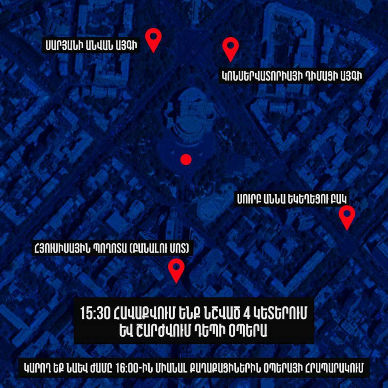 Ուրեմն չմոռանաք այսօր ժամը 15:30-ին լինել նշված վայրերում, որ միասին ցույց տանք մեր անհամաձայնությունը:
