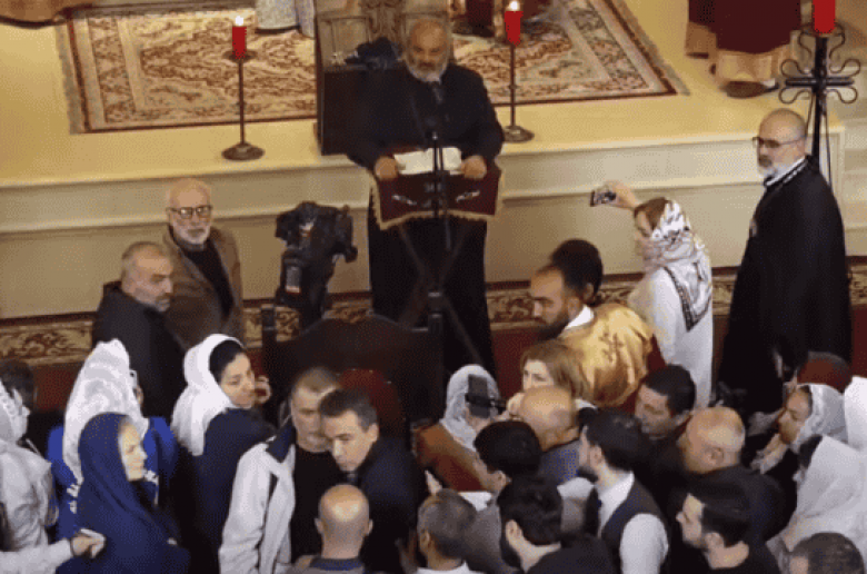 Պատարագին ներկա քաղաքացիներից մեկը հավատացյալների միջից ինչ-որ բացականչություններ հնչեցրեց, որոնք լսելի չէին։