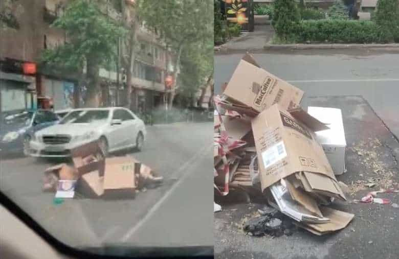 Տեսանյութում երևում է, որ փողոցի մեջտեղում առաջացած փոսը ծածկված է մեծ ստվարաթղթե տուփերով։