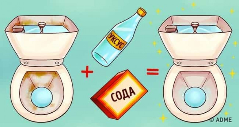 Մի բաժակ 40 աստիճան տաքացրած քացախը խառնել սոդայի հետ: 200 գրամ քացախին պետք կգա 1 ճաշի գդալ սոդա: Ստացված զանգվածը լցնել զուգարանի մեջ մի քանի ժամով: Ավելի լավ կլինի սա անել երեկոյան, որպեսզի լուծույթը մնա ամբողջ գիշեր: