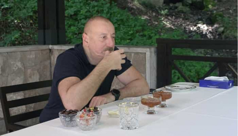 Ադրբեջանի նախագահ Իլհամ Ալիևն օկուպացված Արցախի Շուշի քաղաքում թեյ է խմել։ Ադրբեջանական լրատվամիջոցները կադրեր են տարածել։