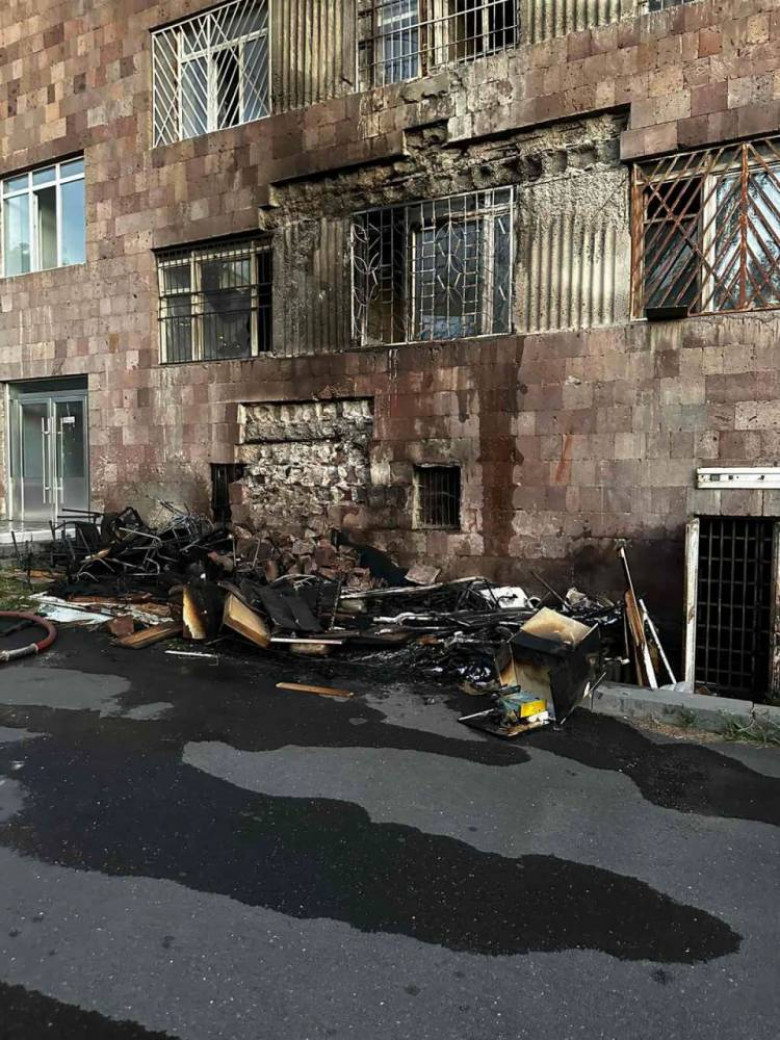 Հրդեհը մեկուսացվել է ժամը 20։35-ին, մարվել՝ 20։51-ին։ Այրվել են բակում կուտակած կենցաղային իրեր, մասամբ ջերմահարվել 1-ին և 2-րդ հարկերի պատուհանների շրջանակները: