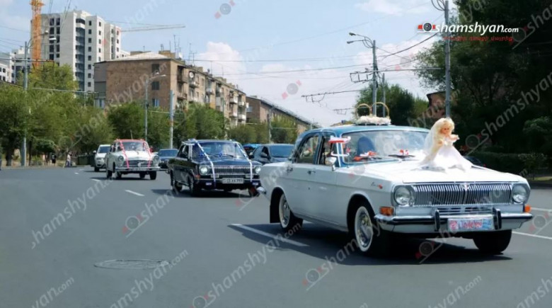 Նորապսակներ 23-ամյա Արմեն Մանուկյանի և 23-ամյա Միլենա Գաբրիելյանի հարազատները, ընկերներն ու բարեկամները Հանրապետության հրապարակ էին ժամանել խորհրդային արտադրության ավտոմեքենաներով, այդ թվում՝ «Վոլգա», «Գազ 2410», «Գազ 21», «Գազ 2110», «Վազ 2101» և այլ մակնիշի ավտոմեքենաներով։