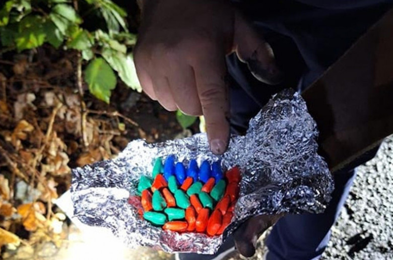 Մասնավորապես՝ անձնական խուզարկությամբ հիշյալ անձանցից մեկի մոտ հայտնաբերվել է թվով 30 տարբեր գույնի կպչուն ժապավեններով փաթեթներ, իսկ Երևան քաղաքի Ֆանարջյան փողոցում գտնվող Զեյթունի գերեզմանատան ավտոճանապարհի մայթեզրին կից խոտածածկ տարածքում կատարված դեպքի վայրի զննությամբ՝ թվով 90 տարբեր գույնի կպչուն ժապավեններով փաթեթներ։