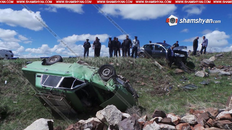 Խոշոր ավտովթար Թալինում. բախվել են Volkswagen-ն ու «06»-ը, վերջինը կողաշրջվելով հայտնվել է դաշտում. 5 վիրավորներից 2-ը երեխաներ են