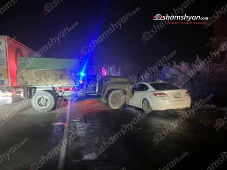 Երեկ՝ նոյեմբերի 11-ին, խոշոր ավտովթար է տեղի ունեցել Արագածոտնի մարզում։ Ժամը 20։10-ի սահմաններում Երևան-Գյումրի M1 ավտոճանապարհի 37 կմ հատվածում՝ Ուջան գյուղի վարչական տարածքում, բախվել են «Mazda» մակնիշի ավտոմեքենան և «ЗИЛ 130» մակնիշի բեռնատարը։