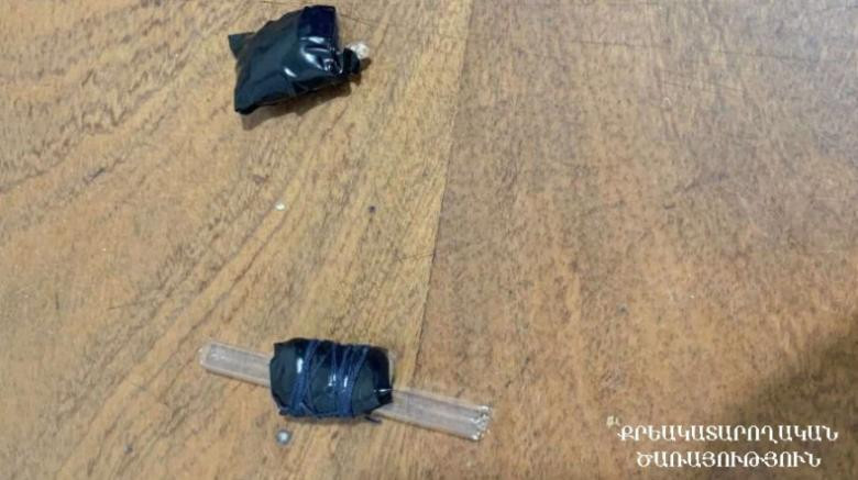 ՔԿ ծառայությունից հայտնում են, որ խուզարկության արդյունքում ծառայողները Ռ.Ն.-ի ներքնազգեստից հայտնաբերել են 2 փաթեթ, որոնցից մեկին թելով ամրացված է եղել ապակե կաթոցիչ։ Ըստ քաղաքացու բանավոր հայտարարության՝ փաթեթներում մարիխուանա տեսակի թմրամիջոց է։