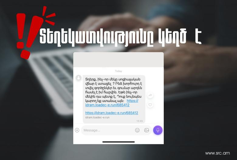 Հորդորում ենք չբացել կցված հղումը` Ձեր իսկ անձնական տվյալների անվտանգության ապահովման նպատակով: