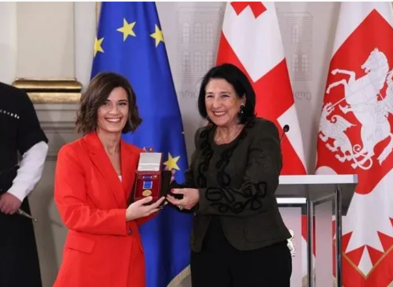 Վրաստանի հինգերորդ նախագահ Սալոմե Զուրաբիշվիլին լրացուցիչ տեղադրել էր ԵՄ դրոշը՝ ընդգծելու երկրի եվրոպական նկրտումները։