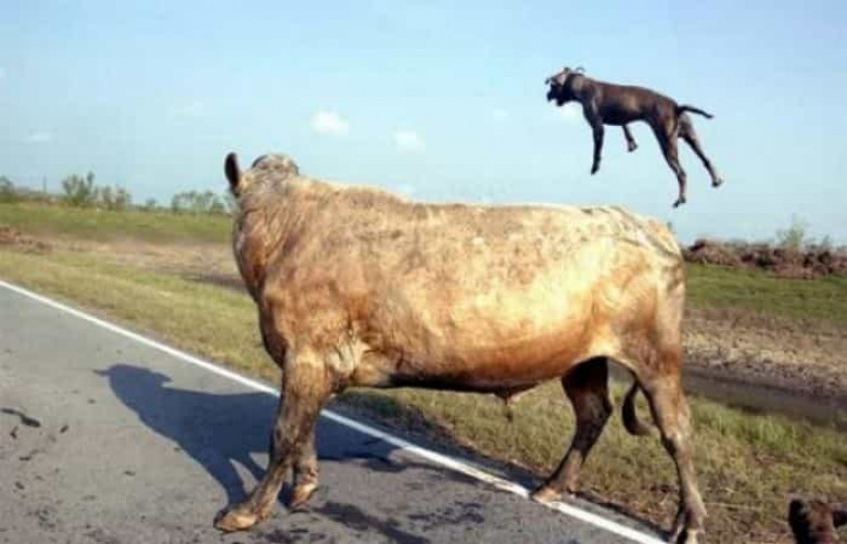Ֆենիքս, Ալաբամա նահանգ: Երկու անտուն պիտբուլ ինքնուրույն էին իրենց կերը հայթայթում: Եվ ահա նրանց ճանապարհին նախիրից հետ մնացած մի ցուլ հանդիպեց: Ավելի լավ է՝ չհանդիպեր... Միամիտ շները որոշեցին ցլի միս համտեսել, բայց արդյունքում կյանքով վճարեցին այդ փորձի համար.