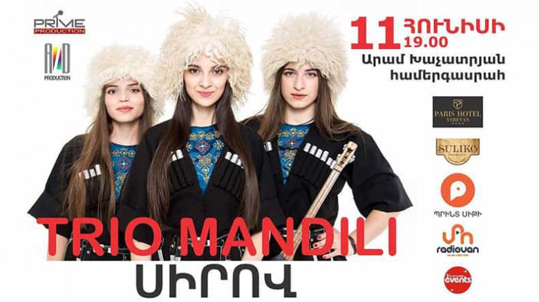 ՄՇԱԿՈՒՅԹ«Trio Mandili» վրացական ֆոլկ խումբն առաջին անգամ համերգով հանդես կգա Երևանում: Համերգի կազմակերպիչների հաղորդմամբ, հունիսի 11-ին Արամ Խաչատրյան համերգասրահում կայանալիք համերգին երեք աղջիկները կներկայացնեն նաև հայերեն ստեղծագործություն: Երեկոյի ընթացքում նախատեսված են նաև այլ անակնկալներ: