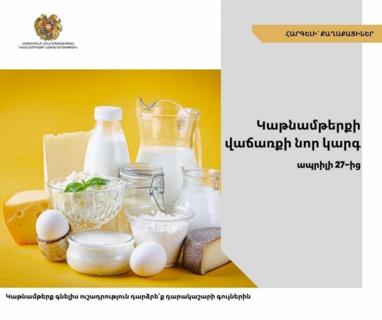 ՏՆՏԵՍՈՒԹՅՈՒՆ2025 թվականի ապրիլի 27-ից ուժի մեջ է մտել «Առևտրի և ծառայությունների մասին» օրենքում կատարված փոփոխությունը, որը սահմանում է կաթնամթերքի վաճառքի նոր կարգ։