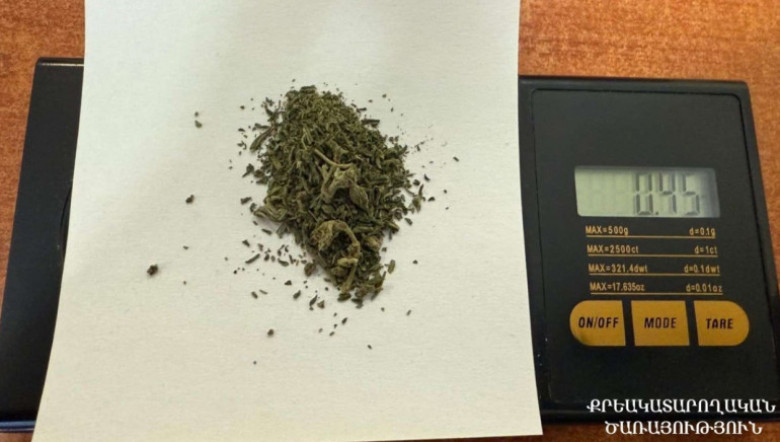 Հանձնուքում առկա տաբատի փոքր գրպանի միջից ծառայողները հայտնաբերել են մարիխուանա տեսակի թմրամիջոցին նմանվող, 0,45 գրամ քաշով, դեղնականաչավուն զանգված։