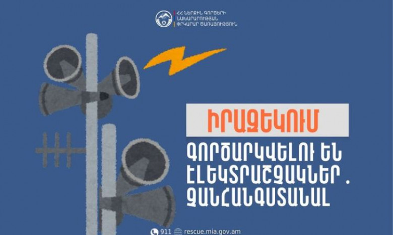 ՀԱՍԱՐԱԿՈՒԹՅՈՒՆՀուլիսի 28-ին՝ ժամը 10:30-ից մինչև 14:30-ն ընկած ժամանակահատվածում, Երևանի Շենգավիթ վարչական շրջանի Արցախի 4-րդ նրբանցքի, Բագրատունյաց, Արշակունյաց պողոտաների, Շիրակի, Շևչենկոյի փողոցների մի շարք հասցեներում գործարկվելու են էլեկտրական շչակներ։