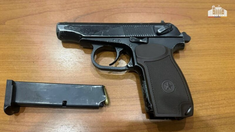Նրա խուզարկությամբ հայտնաբերվել է մեկ փամփուշտով լիցքավորված ատրճանակ, նախնական տվյալներով՝ ձևափոխված մարտականի։