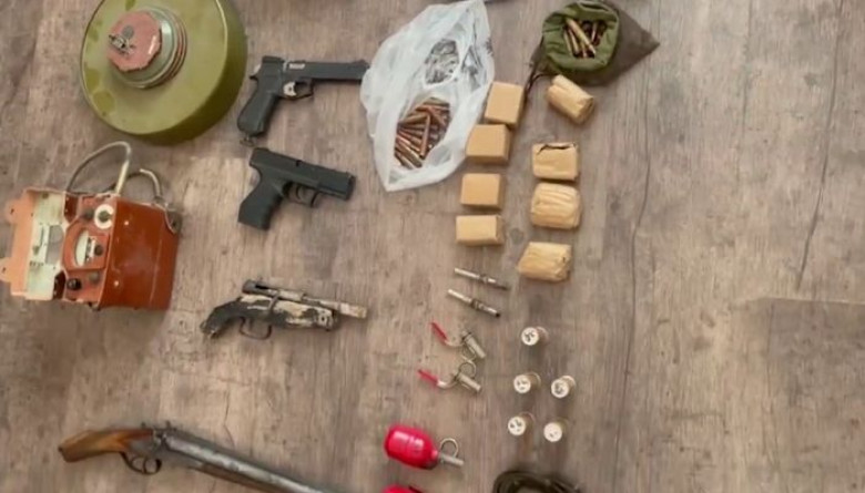 Նախաձեռնված քրեական վարույթի շրջանակում կատարված զննությամբ նշված վայրում հայտնաբերվել է՝ «Կալաշնիկովի» 2 ինքնաձիգ, «Մաուզեր» ինքնաձիգ, տարբեր տեսակի հրացաններ, «Գլոկ» ատրճանակ, «Բայկալ» ատրճանակ, «G1» տիպի 4 նռնակ, «Ֆ1» տիպի նռնակ, նռնակի 8 պայթուցիչ, 2 հակատանկային ական, մոտ 5 մետր դետոնացիոն լար, զինվորական կապի սարքավորում, մեկնարկային ատրճանակի լուսաձայնային 5 փամփուշտ, ինքնաձիգի 4 փամփշտատուփ, որոնցից 2-ը՝ ամբողջությամբ լիցքավորված և ինքնաձիգի 730 փամփուշտ։