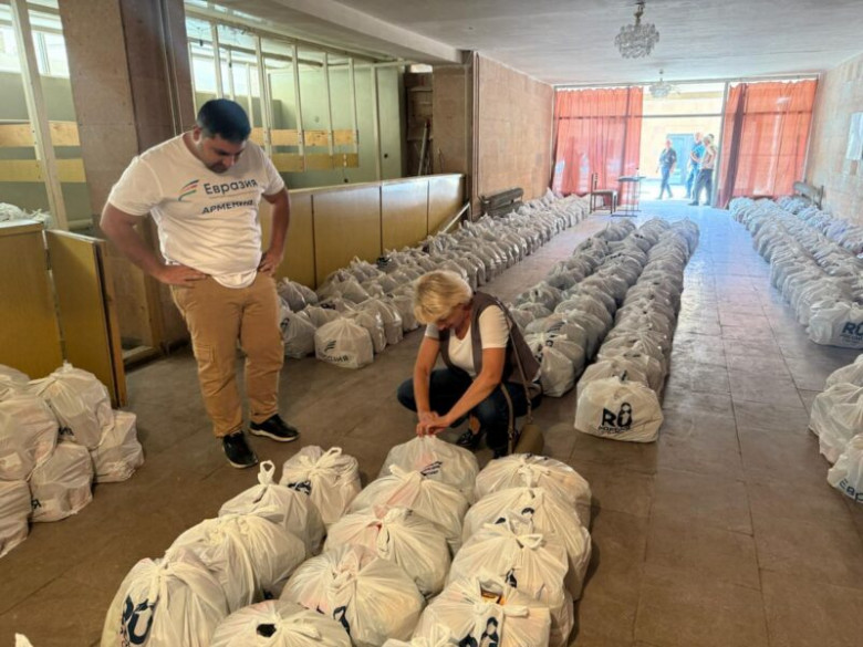«Ռուսական մարդասիրական առաքելության և «Եվրասիա» կազմակերպության թիմը «Ռուսաստանը քեզ հետ» նախագծի շրջանակներում քառօրյա աշխատանք է կատարել Աբովյանում: Այս ընթացքում Լեռնային Ղարաբաղից ներքին տեղահանվածների 800 ընտանիք օգնություն է ստացել: Հիմնական անհրաժեշտ պարագաներից բացի, երեխաներ ունեցող 150 ընտանիք ստացել է մանկական իրեր, այդ թվում՝ սնունդ, հիգիենայի պարագաներ և այն ամենը, ինչ անհրաժեշտ է փոքրիկներին: