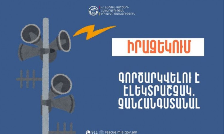 Հոկտեմբերի 20-ին՝ ժամը 10:00-ից մինչև 15:00-ն ընկած ժամանակահատվածում, Տավուշի մարզի Բերդ համայնքի Վերին Կարմիրաղբյուր բնակավայրում անցկացվելու է ««Օդային տագնապ» ազդանշանի դեպքում բնակչության ազդարարման, պատսպարման և տարհանման աշխատանքների կազմակերպումը» թեմայով վարժանք, որի ընթացքում ժամը 12:00-ին գործարկվելու է էլեկտրական շչակ։