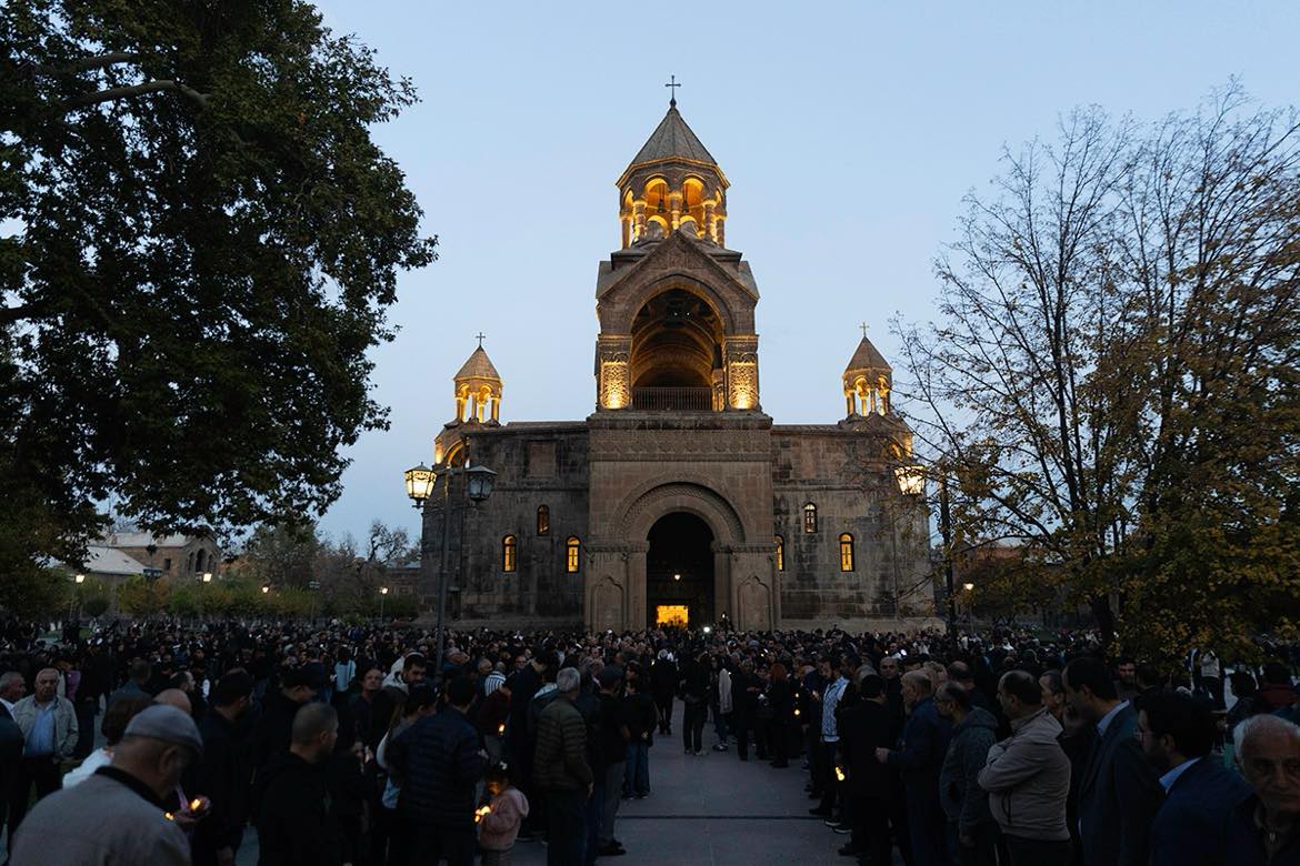 Մայր Տաճարում մատուցվեց հանդիսավոր ժամերգություն՝ Գարեգին Բ Ամենայն Հայոց Կաթողիկոսի առաջնորդությամբ։ Ժամերգությունից հետո տասնյակ հազարավոր ուխտավորներ մասնակցեցին մոմավառության արարողությանը, որն իր խորքում դարձավ լուռ երդում՝ կանգնել եկեղեցու, հավատքի և ազգային ինքնության կողքին։