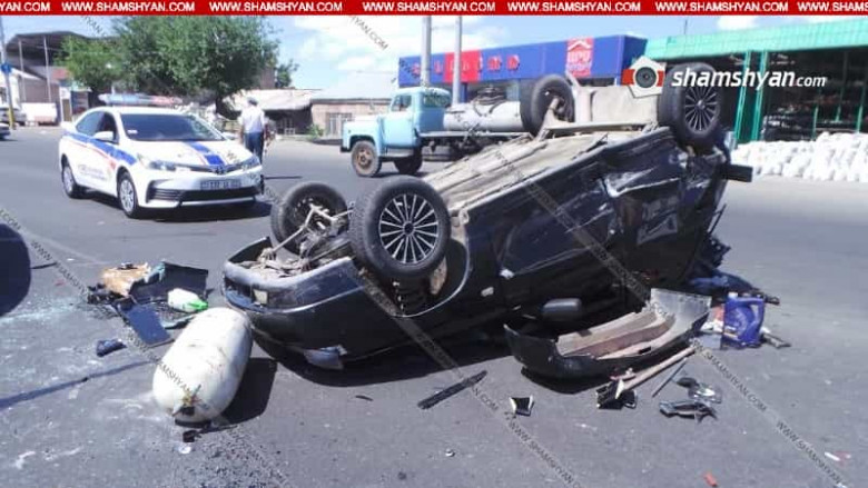 Խոշոր ու շղթայական ավտովթար Երևանում. բախվել են մարդատար Газель-ը, Mercedes-ն ու ВАЗ 21102-ը, վերջինն էլ գլխիվայր շրջվել է