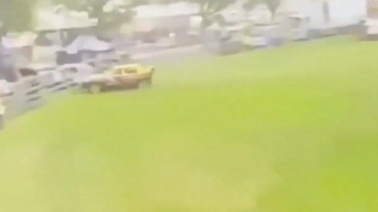 Տեղական լրատվամիջոցների հրապարակած կադրերում երևում է, թե ինչպես է մեքենան առավելագույն արագությամբ անցնում արգելապատնեշը և բախվում ամբոխին։ Ըստ ոստիկանության, վարորդը դեպքից մի քանի վայրկյան առաջ «մրցուղում բախում է ունեցել»։