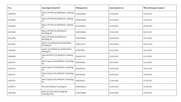ՍԱՏՄ պահանջով կատարվում է NAN-ի որոշ խմբաքանակների հետկանչ (լուսանկար)