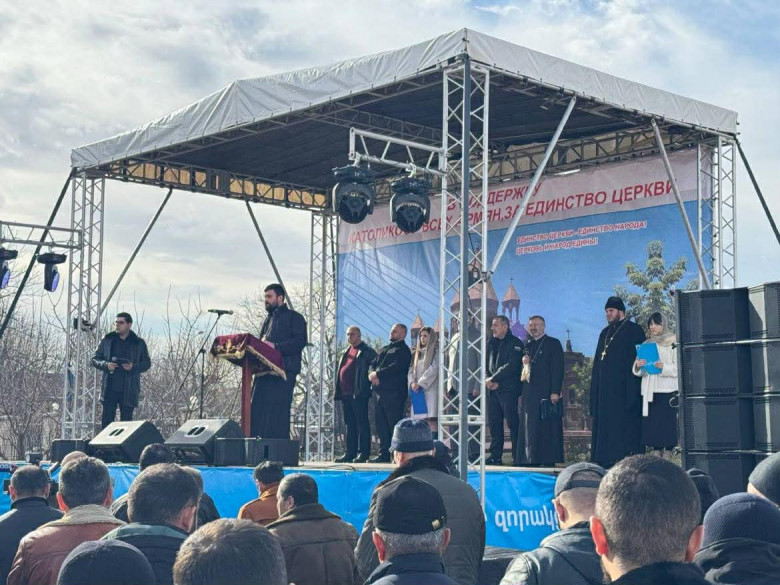 Փետրվարի 1-ին Ռուսաստանի Դաշնության Եսենտուկի քաղաքում, Սուրբ Հռիփսիմե հայկական եկեղեցու տարածքում, տեղի է ունեցել «Մենք Էջմիածնի հետ ենք» խորագրով զանգվածային հանրահավաքը։
