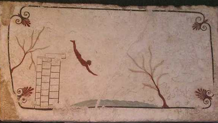 Հնագիտական պեղումների ժամանակ այդ փաստի բազմաթիվ վկայություններ են հայտնաբերվել որմնանկարների վրա, կան նաև ջրի մեջ ցատկող մարդկանց պատկերներ սափորների վրա: Հին ժամանակներում նավաստիներին կամ ձկնորսներին, մարգարիտի սուզորդներին կամ պարզապես սուր զգացմունքներ փնտրողներին պարզապես անհրաժեշտ էր լավ լողալ ու սուզվել։