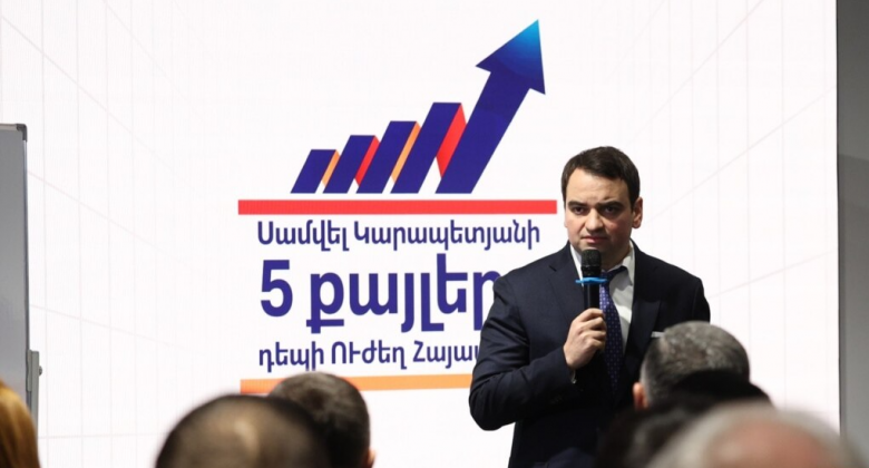 Նրա ներկայացմամբ՝ Սամվել Կարապետյանի նախաձեռնած տնտեսական ծրագրով նախատեսվում է ստեղծել երեք հարյուր հազար նոր աշխատատեղ, փոքր բիզնեսի համար սահմանել զրոյական հարկային դրույքաչափ, գյուղական համայնքներում ստեղծել մթերման կայանների ցանց, ինչպես նաև լուծել բնակարանային խնդիրը՝ կառուցելով քսան հազար մատչելի բնակարան։ Ըստ նրա՝ ուժեղ տնտեսությունը կարող է դառնալ այն հիմքը, որի վրա հնարավոր կլինի կառուցել անվտանգ և կայուն պետություն։