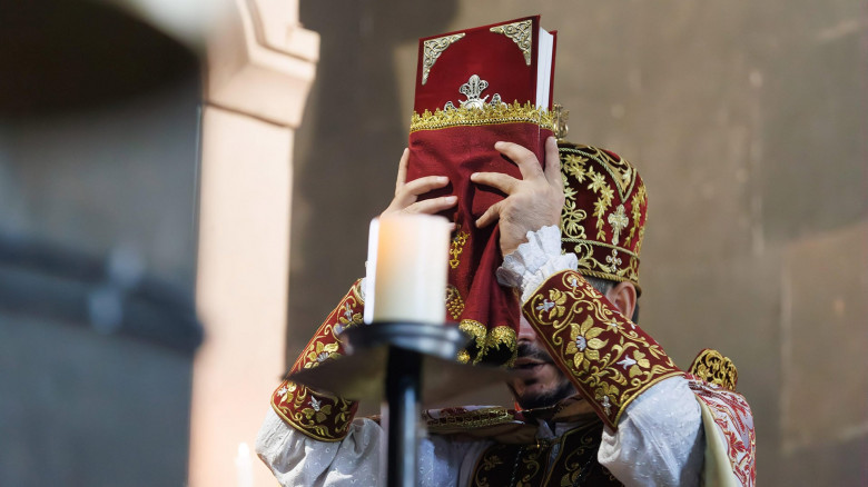 Եվ նա, ով ճաշակի սրբերի համար պատրաստված այդ կերակրից, կպատկանի Տիրոջն ու իմաստություն կունենա՝ զանազանելու չարն ու բարին։ Թող որ այդ իմաստությունը գտնելով՝ մենք ևս արժանի լինենք երկնային ուրախությանը մեր Տիրոջ՝ Հիսուս Քրիստոսի հետ, Ում փա՜ռք և զորությու՜ն հավիտյանս։ Ամեն։