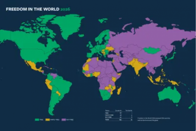 ՎԵՐԼՈՒԾՈՒԹՅՈՒՆՆԵՐԵրեկ հրապարակվել է Freedom House-ի «Freedom in the world 2026» տարեկան զեկույցը, ըստ որի՝ Հայաստանը շարունակում է մնալ «մասամբ ազատ» երկիր։ 2026 թվականին Freedom House-ի վարկածով Հայաստանի ժողովրդավարության ինդեքսը 100 հնարավորից ստացել է 54 միավոր։ Ադրբեջանը ստացել է հնարավորից 6 միավոր, Վրաստանը՝ 51, Թուրքիան՝ 32, իսկ Ռուսաստանը՝ 12։