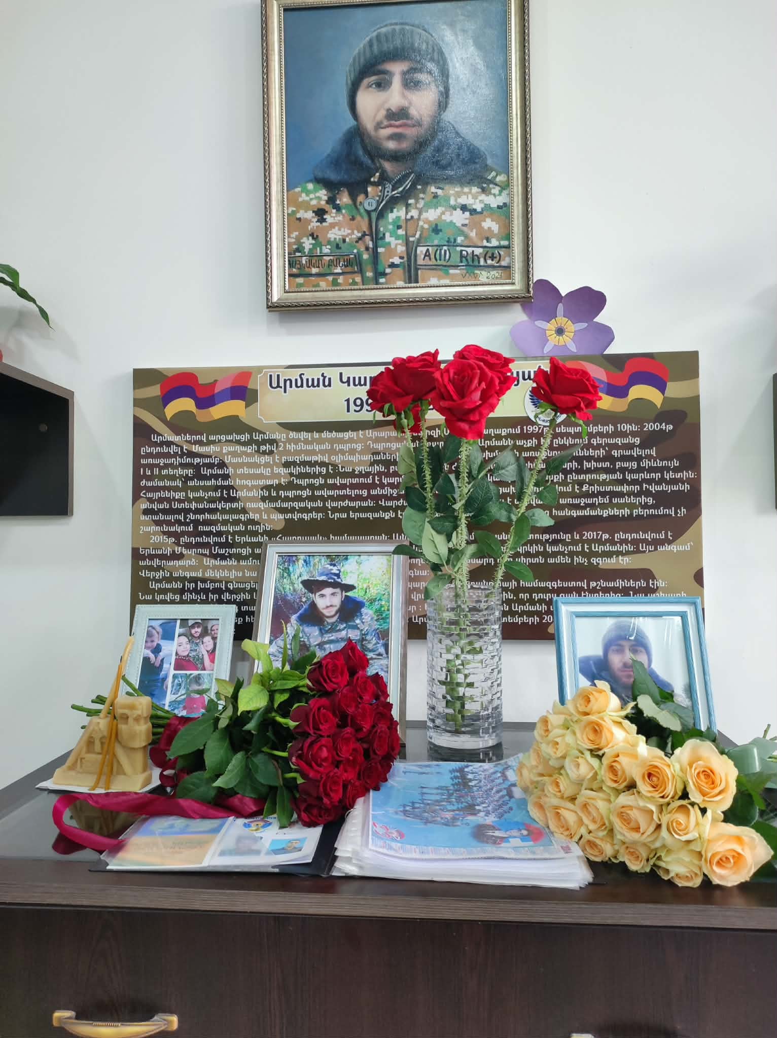 «Արցախից եմ։ Առաջին պատերազմի ժամանակ տեղահանվեցինք և հաստատվեցինք Հայաստանում։ Եղբայրներս պատերազմի մեջ էին այդ ժամանակ։ Յոթ երեխա ենք՝ չորս տղա և երեք աղջիկ։ Հայրիկս վաղ էր մահացել, և մայրիկս միայնակ մեծացրեց մեզ։ Մնացի Հայաստանում, ընտանիք կազմեցի, ամուսինս նույնպես Արցախից էր տեղահանված»։ Այսպես ենք սկսում 44-օրյա պատերազմի ժամանակ անմահացած Արմանի մասին զրույցը նրա մայրիկի՝ տիկին Ելիզավետայի հետ։