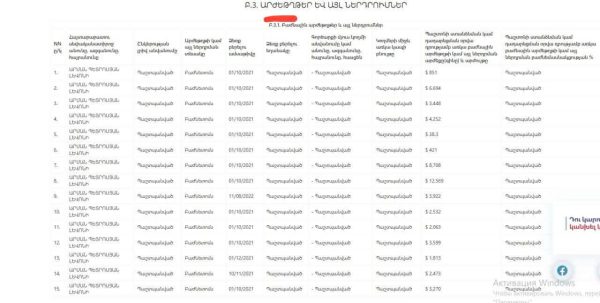 2021 թվականի հայտարարագրի տվյալները