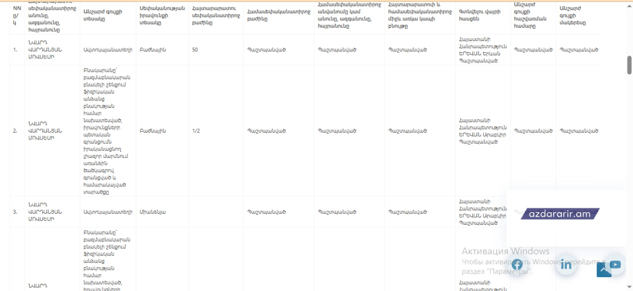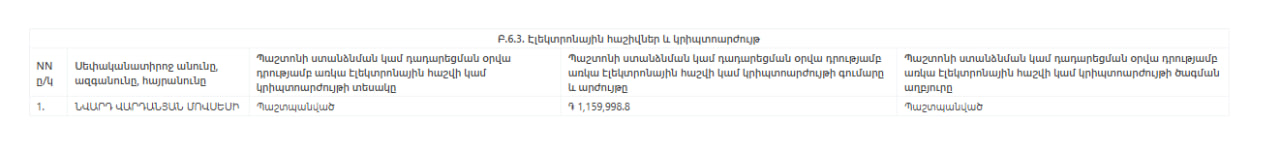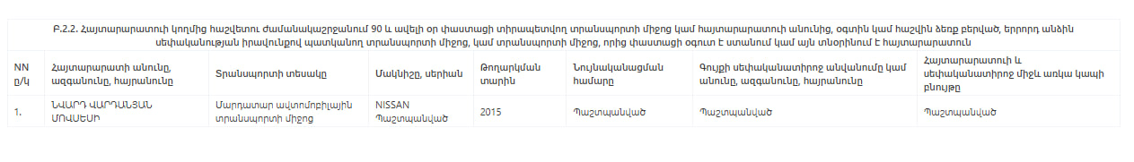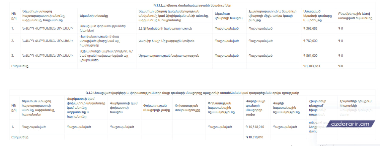ArmLur.am-ի ուսումնասիրությամբ ներկայացնում ենք նրա հայտարարագրերի ամբողջական տվյալները։