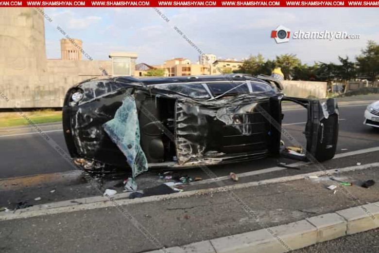 Խոշոր ավտովթար Երևանում. 37-ամյա վարորդը Porsche Cayenne-ով բախվել է բետոնե արգելապատնեշներին և կողաշրջվել. Կա 4 վիրավոր