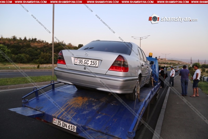 Երևանում համայնքային ոստիկանը Mercedes-ով բախվել է ճամփեզրի եզրաքարերին և կողաշրջվել