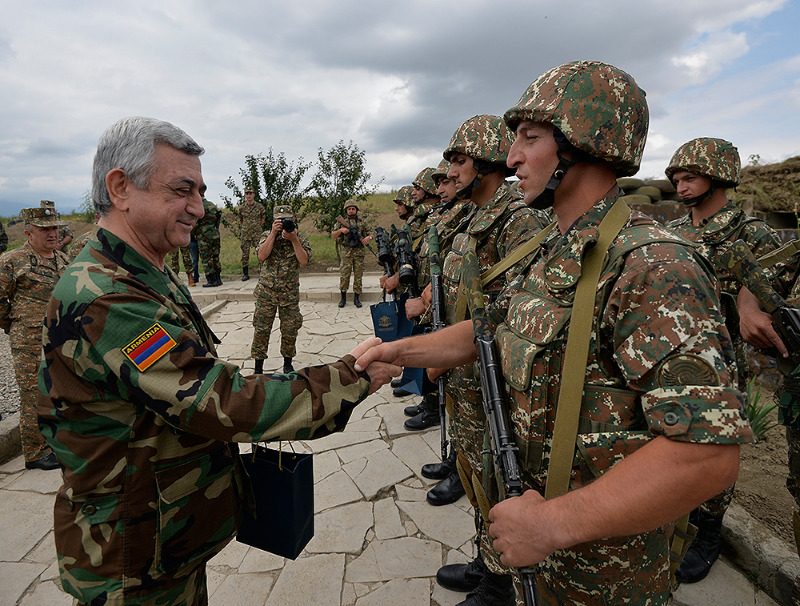 Նախագահը այցելել է հյուսիսարևելյան սահմանագոտու մարտական դիրքերից մեկը՝ շրջայց կատարել մարտական հենակետում և ծանոթացել ծառայության անցկացման ու զինվորների կենցաղային պայմաններին, ինժեներական և ամրաշինական կառույցների, մարտական պատրաստականության վիճակին:Հանրապետության Նախագահը նվերներով խրախուսել է ծառայության ընթացքում անձնվիրությամբ և խիզախությամբ աչքի ընկած մի խումբ սպաների և զինվորների: Նախագահը շնորհակալություն է հայտնել հայրենիքի պաշտպաններին, մաղթել նրանց հաջողություն, բարի ծառայություն և ընդգծել, որ նրանց բարեխիղճ ծառայությունը մեծապես գնահատվում է և նրանց շնորհիվ մեր ժողովուրդը կարողանում է հանգիստ ապրել, աշխատել և զարգացնել մեր հայրենիքը: