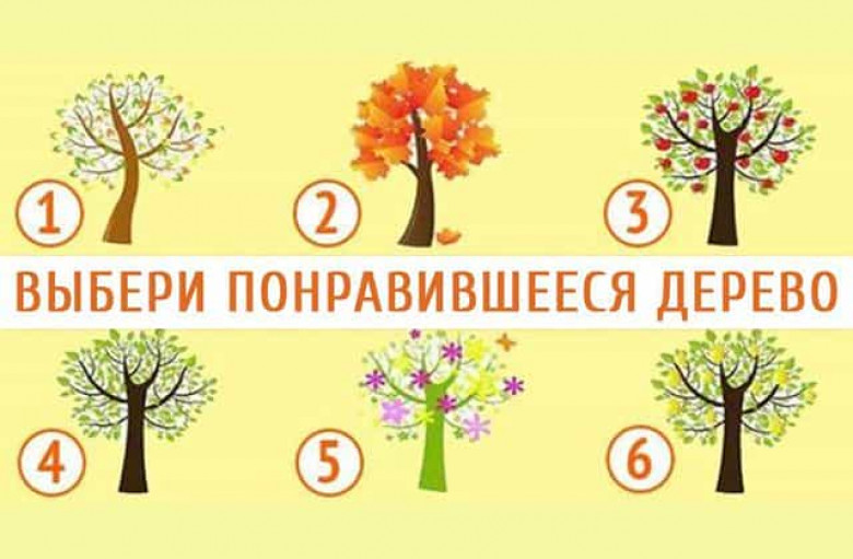 ՖՈՏՈFormulalubvi.com-ը գրում է, որ թեստերն օգնում են վեր հանել բնավորության մի շարք առանձնահատկություններ։ Արդյունքները հաճախ ավելի քան խոսուն են։ Եթե ցանկանում եք իմանալ, թե ինչ առանձնահատկություններ են բնորոշ ձեր բնավորությանը, ընտրեք այն ծառը, որը ձեզ ամենից շատն է դուր գալիս։