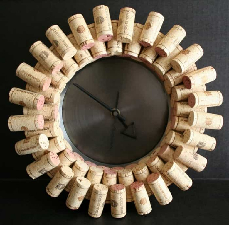 Часы возможно создать даже из винных пробок, то что создаст интересную атмосферу.