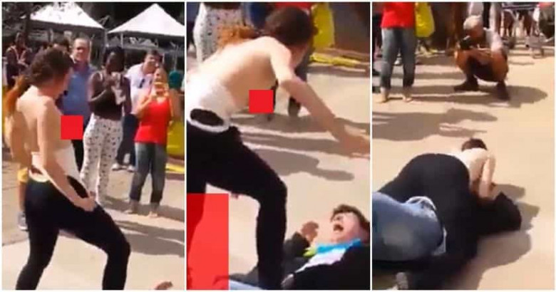 «Կուրծք ես ուզու՞մ». կինը տղամարդուն գցում է գետնին ու սկսում կրծքերով խփել նրա դեմքին