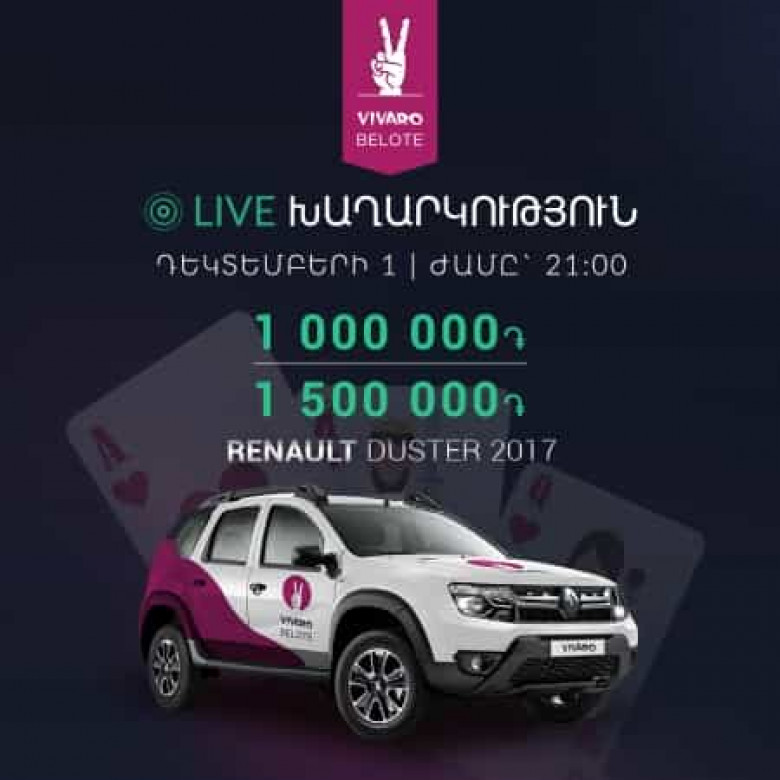 Այսօր ՎիվառոԲլոտում խաղարկվում է Renault Duster ավտոմեքենա և 2.500.000 դրամ. ՈՒՂԻՂ ՀԵՌԱՐՁԱԿՈՒՄ