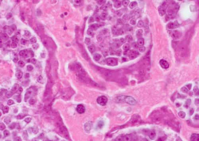 Այս լուսանկարի կենտրոնում կարող եք տեսնել չարորակ ուռուցքի բջիջներ, որոնք մարդուն են անցել մակաբույծներից: