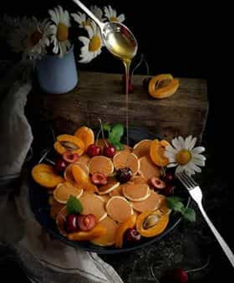 • Մինի-փանքեյքները մատուցել մեղրով (կամ օշարակով), հատապտուղներով և մրգերով:
