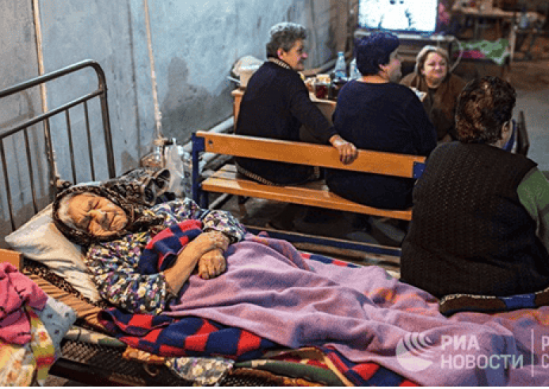 Ավանդաբար ծերերը ապրում են երիտասարդների հետ, և չնայած կանայք և երեխաները կացարան են գտել Հայաստանում՝ նրանց ծնողները հրաժարվել են լքել իրենց այն զավակներին, որոնք կռվում են ճակատում՝ իրենցից ընդամենը մի քանի կիլոմետր հեռավորության վրա: Ստեփանակերտում գիշերը ծերերը սովորաբար անց են կացնում նկուղներում և ռմբապաստարաններում, իսկ ցերեկը, եթե չկա օդային տագնապ երբեմն դուրս են գալիս փողոց: Ստեփանակերտում երեխաներ և դեռահասներ չեն մնացել: Մայրաքաղաքի դատարկ փողոցներում կարելի է տեսնել միայն ծերերի ու կամուֆլյաժով տղամարդկանց: Քաղաքի կենտրոնում գտնվող հացի խանութի մոտ Վիտալիկ անունով տարեց բնակիչը մանկության ընկերոջ հետ հանգիստ քննարկում է հյուսիսային ռազմաճակատի իրենց թոռների միասին լուրերը: