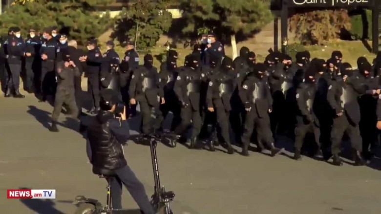 Երեկ Երեւանում եւ Հայաստանի որոշ մարզերում Արցախի կապիտուլյացիայի ստորագրման դեմ տեղի ունեցող բողոքի եւ անհնազանդության ակցիաները ճնշող ոստիկանական ուժերի գերակշիռ մասը դիմակներով էր՝ դեմքները ծածկած։ Տեղեկություններ կան, որ սրա պատճառը ոչ միայն այն է, որ ոստիկաններն ամաչում են բաց երեսով պաշտպանել պարտություն կրած վարչապետին, այլեւ նրանցից շատերը կառավարական առանձնատներում հավաքագրված հրոսակախմբի անդամներն են, որոնց համազգեստ է բաժանվել, եւ որոնց օգտագործում են նաեւ հակաիշխանական ակցիաները ճնշելու նպատակով։ Ընդ որում, տարակուսանքի տեղիք տվեց այն, որ այդ՝ չինական համազգեստով դիմակավորված անձինք, որոնք բիրտ ուժ կիրառելով բերման էին ենթարկում քաղաքացիներին, ոչ թե ոստիկանության ծառայողներ են, այլ տարբեր օլիգարխների թիկնազորի անդամներ։ Ոստիկանության լրատվականից մեր հարցին ի պատասխան պարզաբանեցին․ «Ոստիկանության զորքերը մասնակցել են ռազմական գործողություններին, եւ վերադառնալուց հետո նրանց հագուստները պիտանի չեն եղել կրման համար։ Պահեստավորված համազգեստ է հատկացվել, որոնց վրա ժամանակի սղության պատճառով հնարավոր չի եղել հայատառ գրություն կատարել»։ Այսինքն, ոչ միայն բանակի սաղավարտների ու համազգեստի պակաս ունենք, այլեւ՝ ոստիկանական համազգեստի։ Բացահայտումները շարունակվում են։