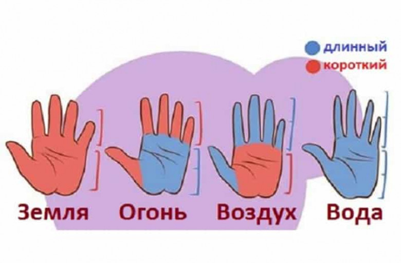 1.Կրակ։ Մարդիկ, ովքեր մեծ ափ և կարճ մատներ ունեն, կրակի նման իմպուլսիվ են, համառ և գիտեն՝ ինչ են ուզում։ Նրանց արյան մեջ կիրքն է հոսում. հենց այս մարդկանց են ցանկանում տեսնել ակտիվ գործունեության մեջ։ Նրանք աշխատունակ են և ամեն ինչ հասցնում են ավարտին, ինչ էլ դա արժենա։ Նրանք ի ծնե լիդերներ են, կարող են ներշնչել իրենց աշխատակիցներին և հարազատներին՝ ավելի լավը դառնալ։ Նրանք սիրում են սպորտ, սոցիալական ակտիվություն և շփում մարդկանց հետ։