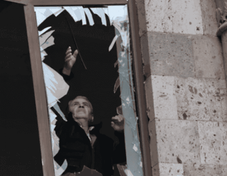 68-ամյա Դավիթ Տոնոյանի պատուհանների վրա ապակիներ չկան, մի քանի բեկորներ խրված են շրջանակների մեջ:  Տարեց մարդ է, ալեհեր, դեմքը առատորեն կնճիռներով ծածկված:  Նա զգուշորեն դուրս է հանում բեկորները և թափանցիկ պլաստիկի կտորները սոսնձում շրջանակներին: Այսպիսով, նա տունը պատրաստում է  հարազատների վերադարձին: