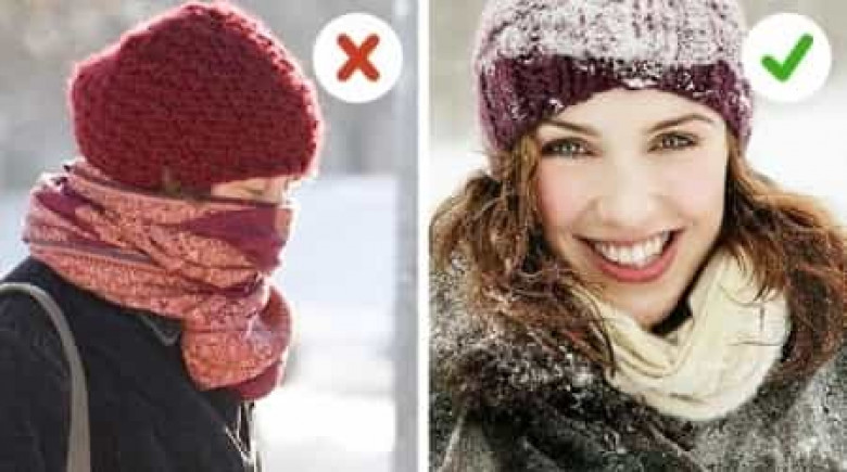 Ցուրտ եղանակին պետք չէ բերանն ու քիթը փակել, քանի որ կտորից ներթափանցող գոլորշին ցրտին սառույցի է վերածվում, իսկ օդն էլ ավելի սառը դառնում։  Եթե շատ եք ցանկանում փակել դեմքը, ապա գոնե բաց թողեք քիթը։