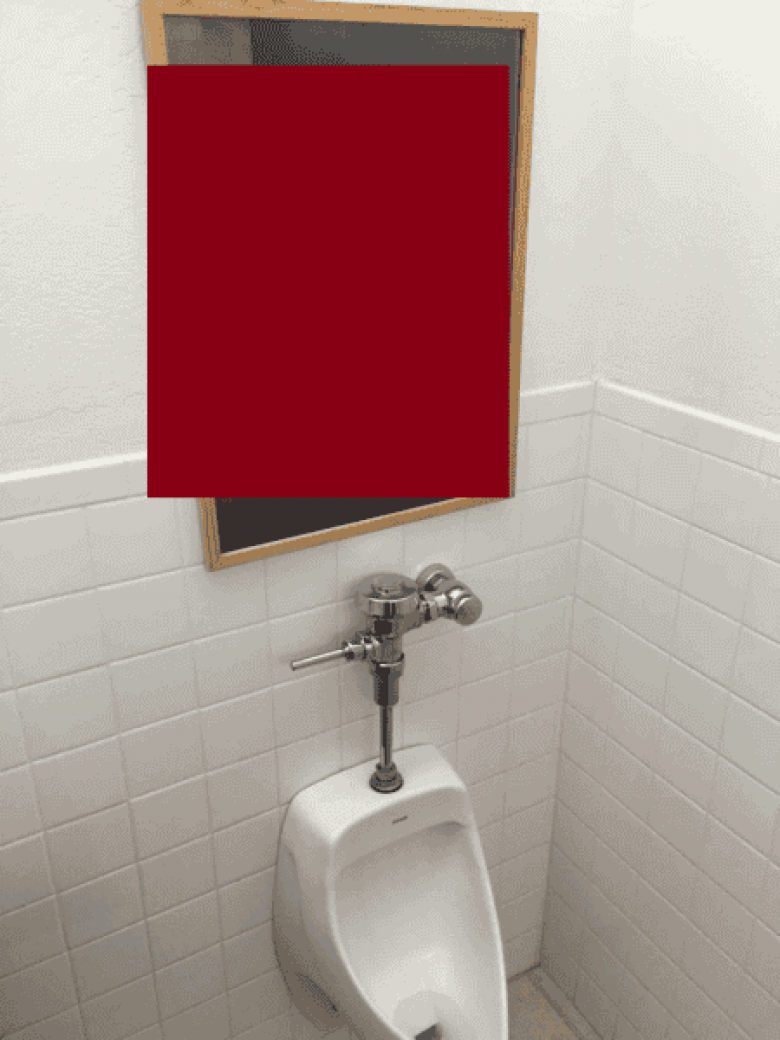 Այս զուգարան մտնելիս տղամարդիկ աշխատում են չնայել պատից կախված այս նկարին. դա նրանց անհարմար դրության մեջ է դնում