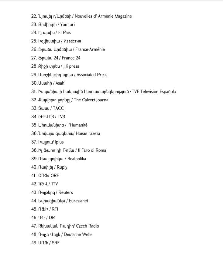 Ստորև ներկայացվում է օտարերկրյա լրատվամիջոցների ցանկը: